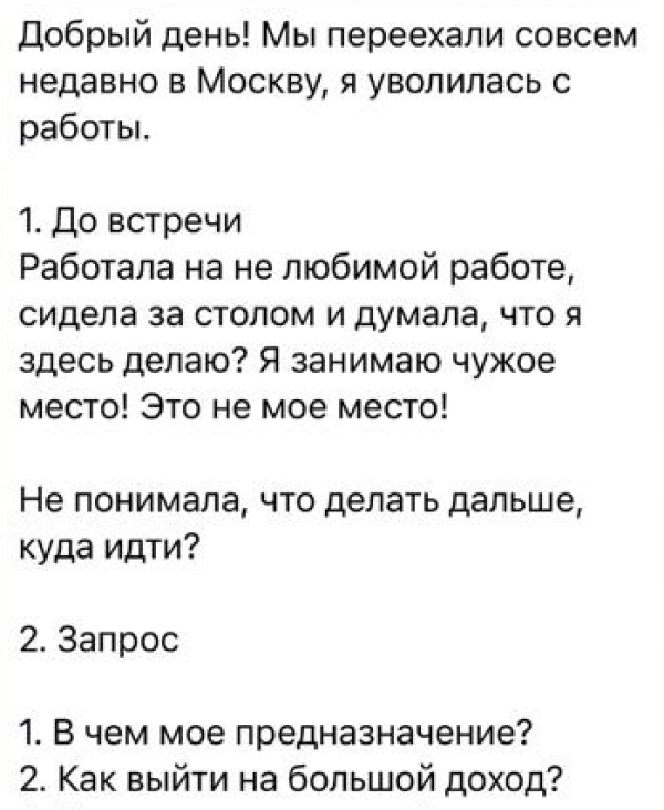 Я пришла в помогающую профессию из состояния полного разрушения и опустошенности. И очень знаю что такое необъяснимая сердечная боль, ощущение невозможности реализовать внутренний потенциал, страх быть отвергнутым и тд.