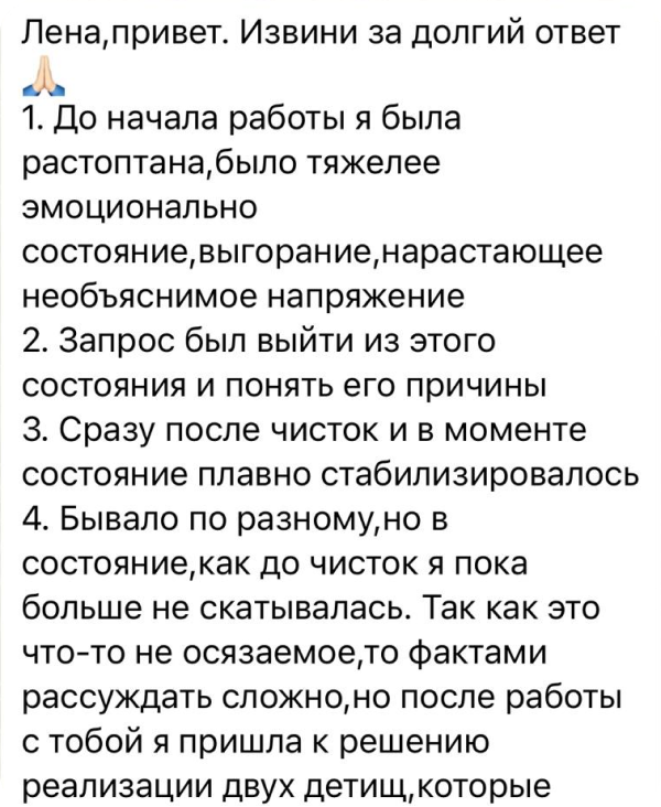 Да, именно для этого я и не ограничиваю свою обратную связь по времени, я сопровождаю своего клиента на каждом этапе и через любое время после сессий